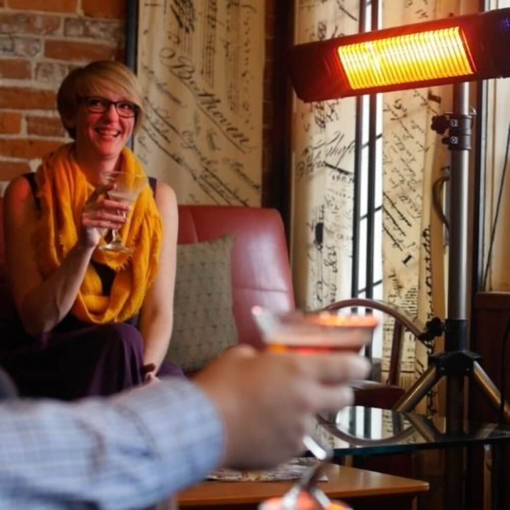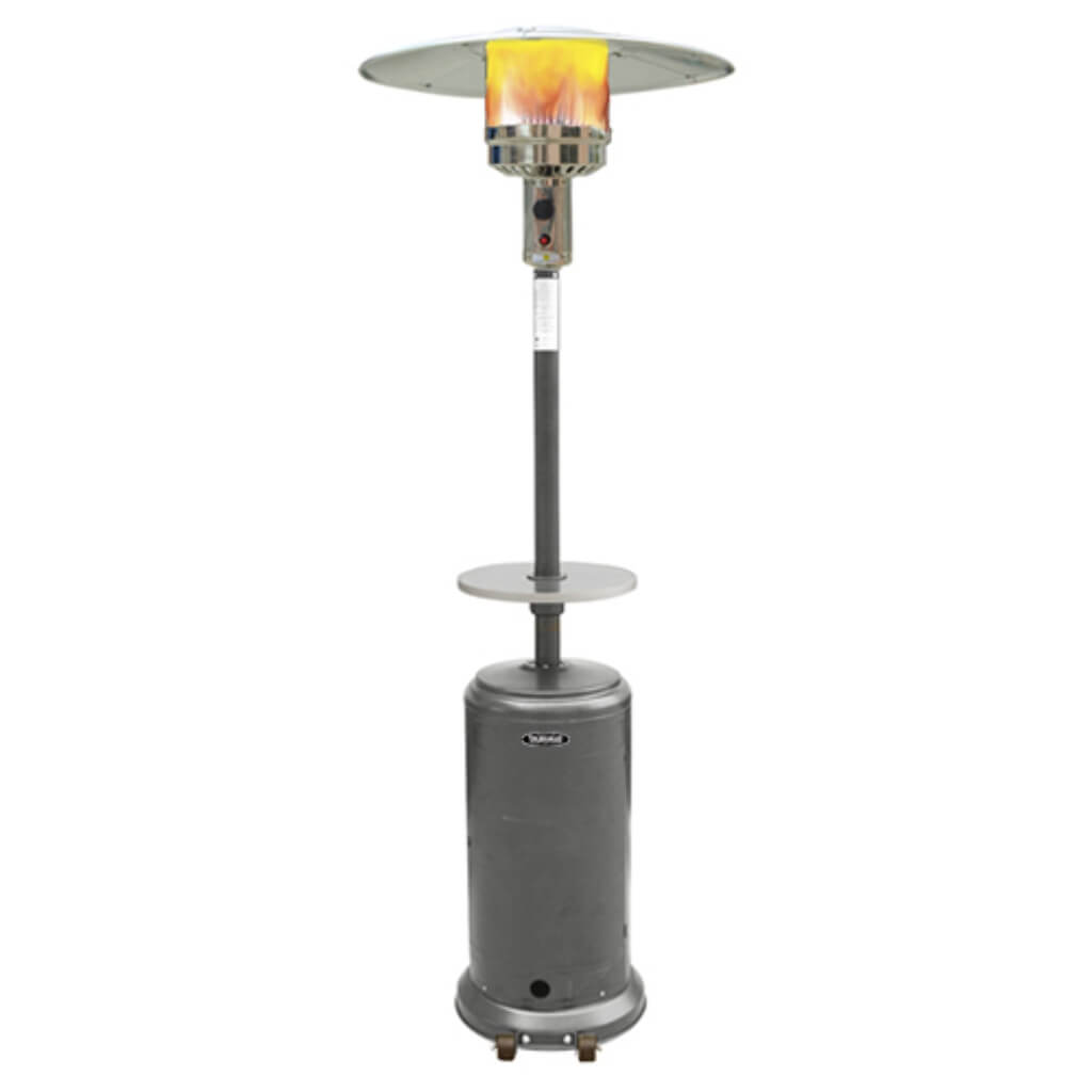 On Sale!Vendor:SunHeatPortable Propane Patio Heater with Classic Design & Hammered Silver Finish - Includes Drink Table Accessory